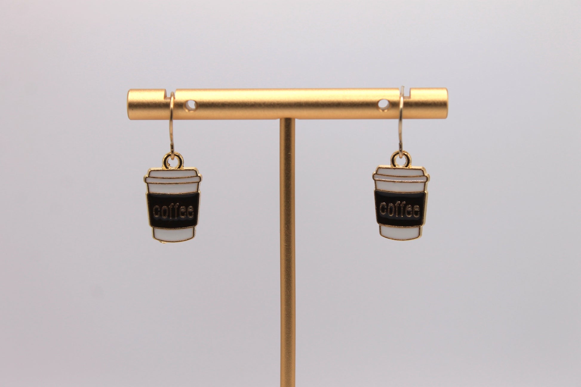 Our Coffee Earrings are a whimsical piece that will add a fun twist to your outfit! They were handcrafted together using gold-colored iron earring hooks and enamel coffee pendants.